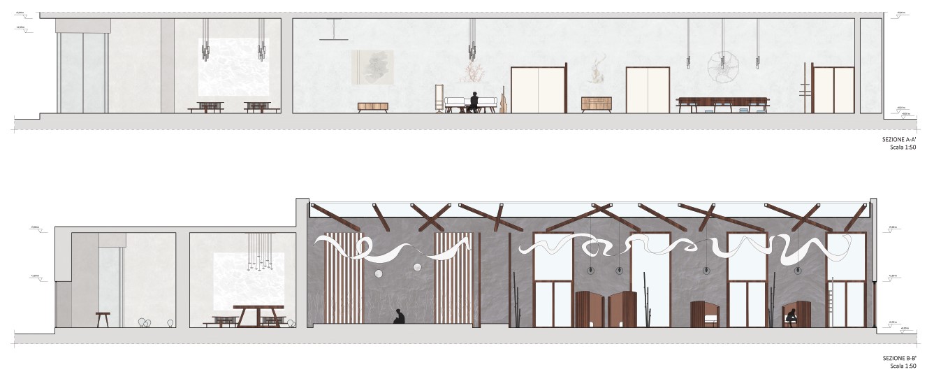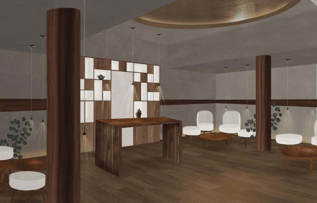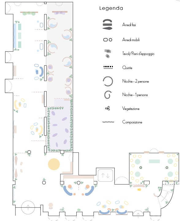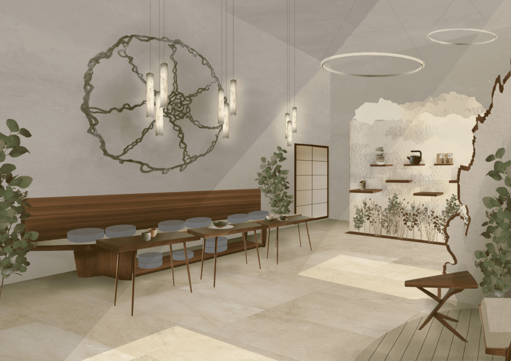 The project lightens the whimsical and multicultural character of the Enterprise hotel through spaces permeated by an atmosphere of tranquility, contrasting with the frenzy of Milan. Customers will be able to rebalance their own Qi (Yin and Yang inner energy) by undertaking a sensory journey step by step, either introspective or collective, set up in the common areas: the reception, lounge areas, garden, and bar.